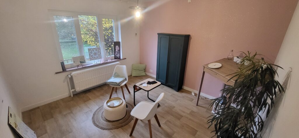 Pièce très lumineuse de 14 m². Dispose de fauteuils pour vos séances individuelles ou semi-collectives.